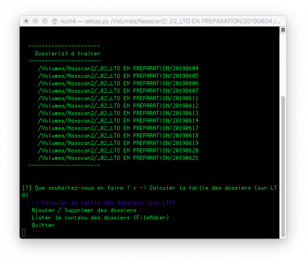 • Calcul de la taille sur LTO d'un ou plusieurs dossiers