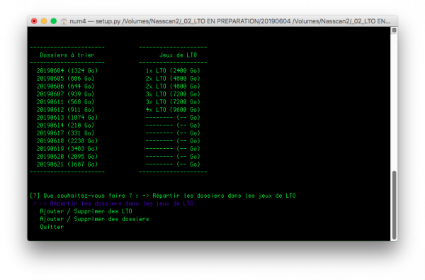 Bin Packing LTO est un petit script (écrit en python) pour aider à la répartition d'un maximum de SCAN dans un minimum de LTO, pour un minimum de BACKUP.