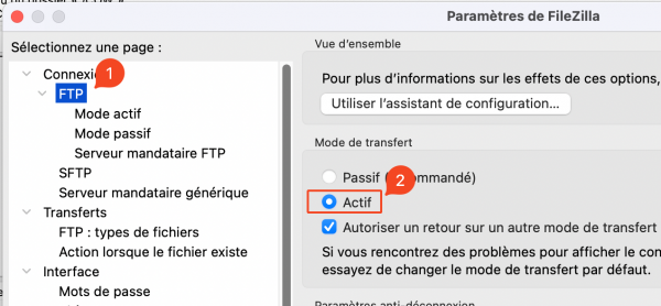 * Auto En mode Auto, le client FTP va automatiquement choisir le mode Binary ou le mode ASCII en fonction de l'extension du fichier. Les fichiers qui contiennent du texte (comme les fichiers .txt, .php, .css, .js, .sql…) seront transféré en mode ASCII, tandis que les autres fichiers (images .jpg, .png, vidéos .mp4…) seront transférés en mode Binary.